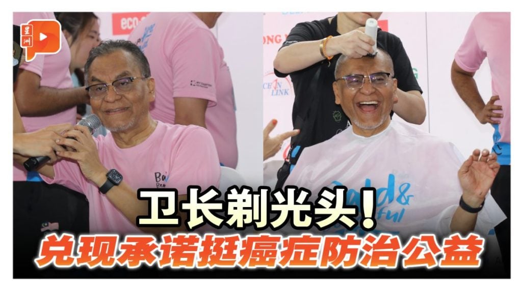 卫生部长当众剃光头!卫生部长祖基菲里阿末今日为“光头与美日2025”慈善盛会主持开幕时,大会即场号召,若筹款所得突破1万令吉,部长将参与“落发挑战”。 短短10分钟内,热心人士踊跃捐款并筹得过万令吉,部长也兑现承诺在现场铲下青丝。