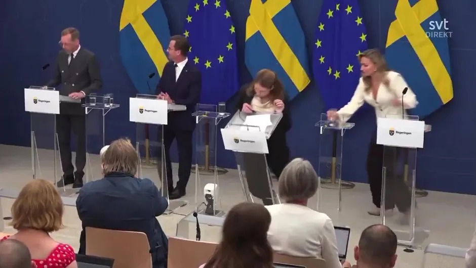 瑞典新任卫生部长伊莉莎白·兰恩周二上任第一天,便在与首相克里斯特松、副首相总理布什等官员共同出席的记者会上昏倒,画面迅速在社媒平台疯传。